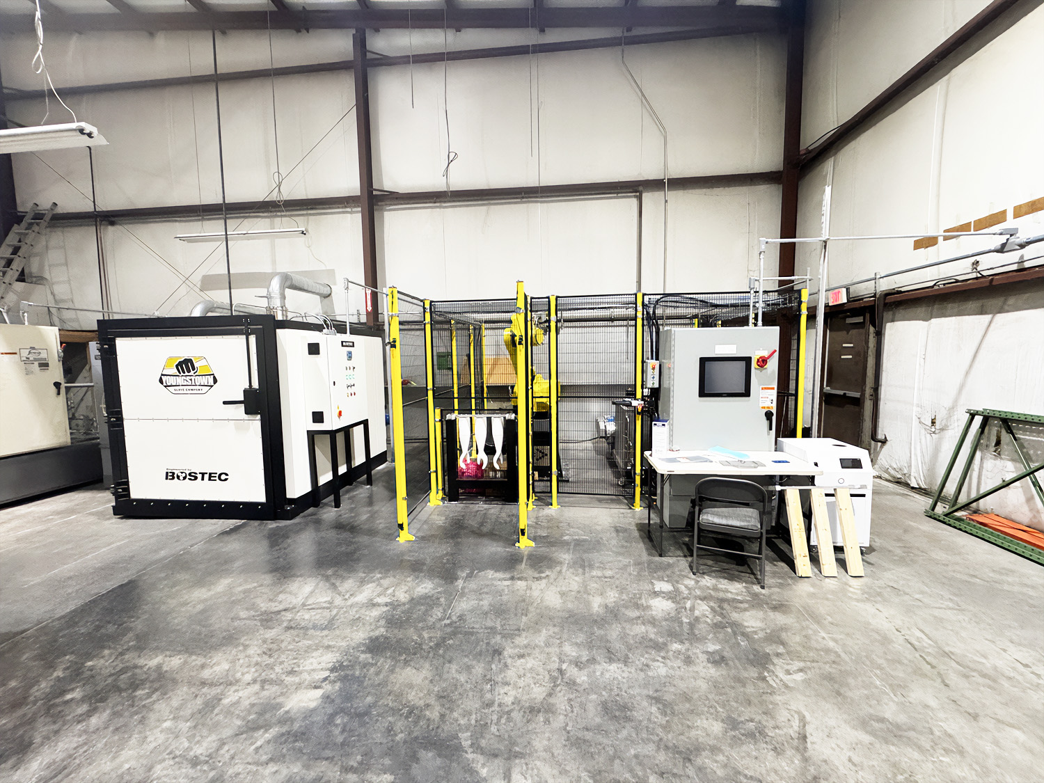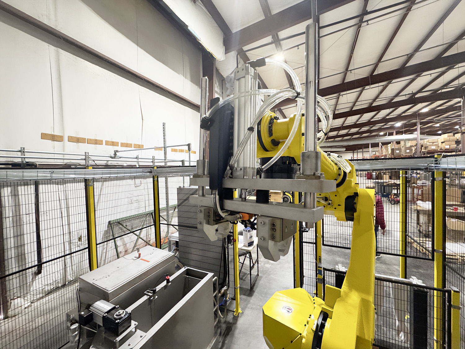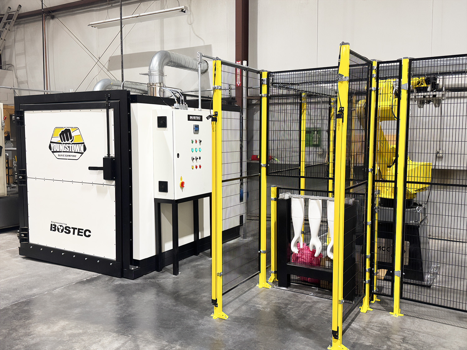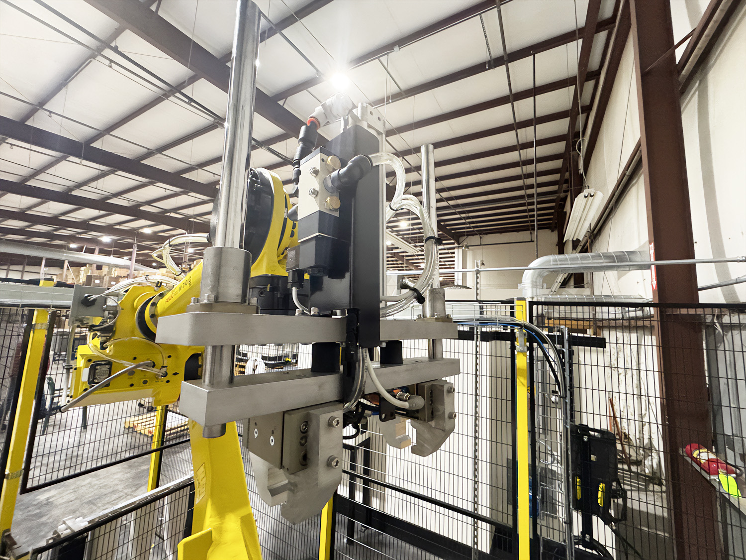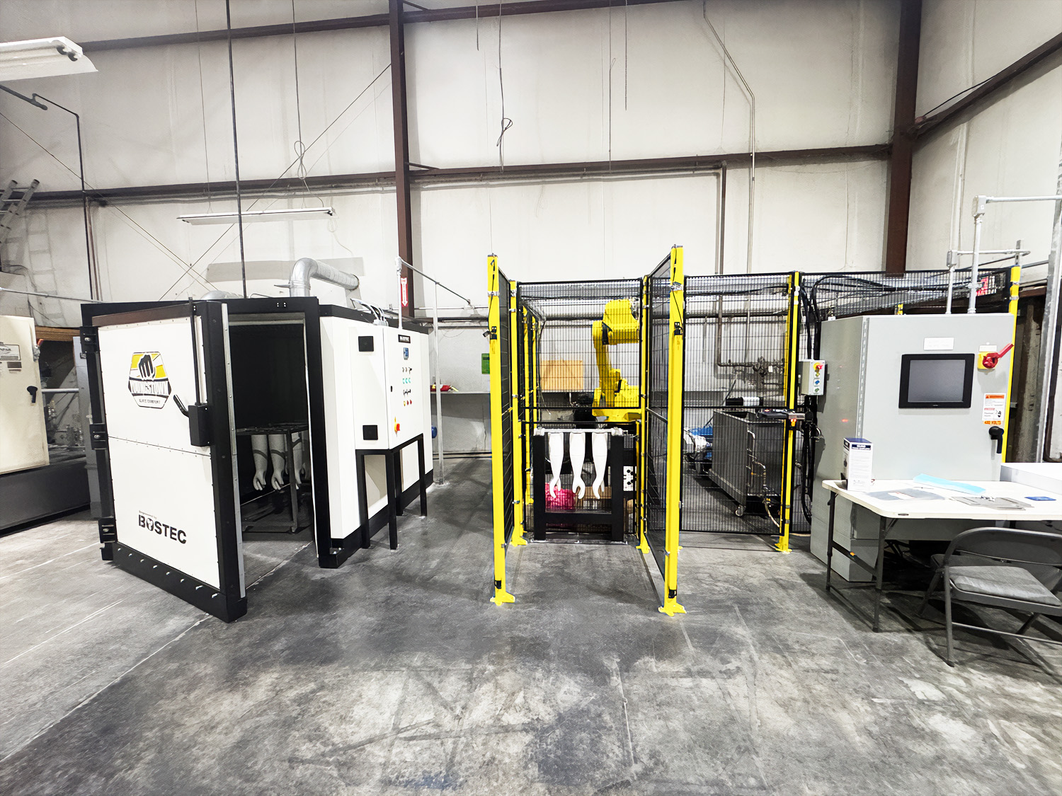 Advanced automation now supports a wide variety of industrial applications, with machine tending, palletising and welding among the most common. Our experience spans integration with leading robot models, combined with proven solutions tailored to core product ranges such as spray booths, curing ovens and powder coating systems. Machine tending applications allow efficient operation of manufacturing cells, loading and unloading with the potential for lights out production. Palletising systems provide adaptable handling for coated components, integrating seamlessly with packaging and finishing equipment. Robotic welding remains a leading application, complemented by our broader expertise in systems design and fabrication. Together, these capabilities position us as specialists in turnkey robotic solutions.
